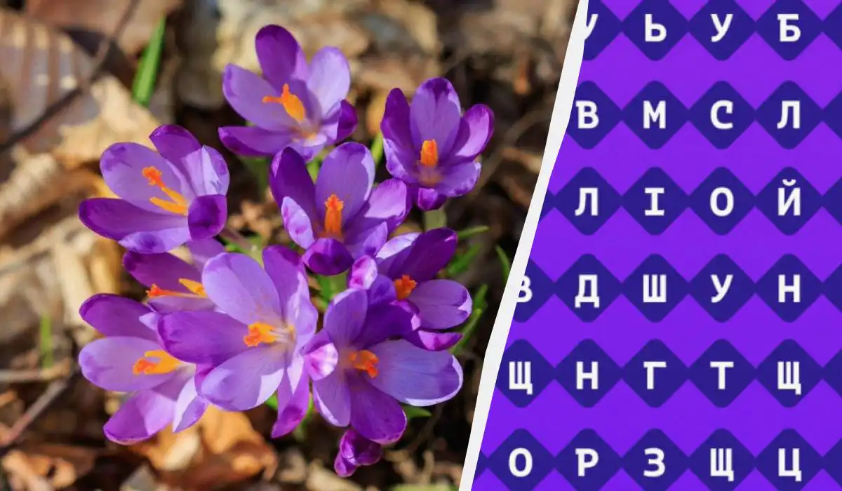 Încercați să găsiți cuvântul „crocus” printre multe litere / colaj Moje, fotografie Moje