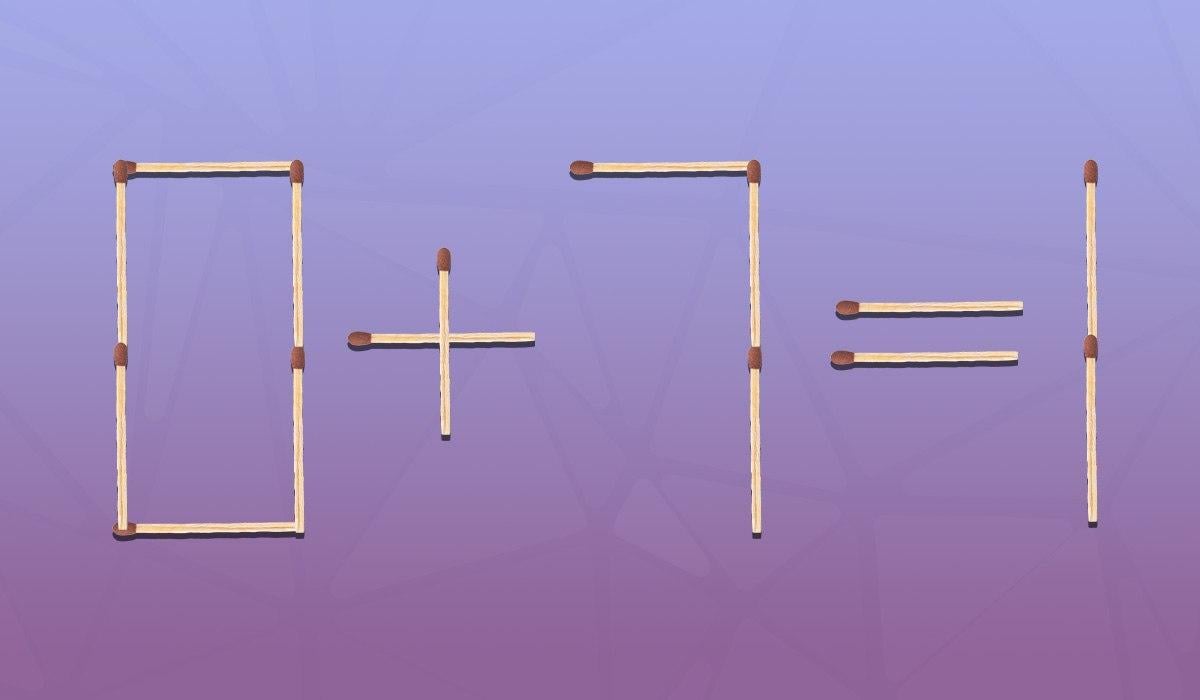 Așadar, mai jos veți vedea o imagine în care egalitatea 0+7=1 este așezată folosind chibrituri. Evident, există o eroare aici. Sarcina dvs. este să corectați egalitatea făcând o mică modificare.