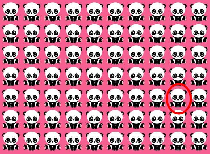 Nu ai noroc? Prindeți răspunsul – panda care este diferit de ceilalți din colțul din dreapta jos. Acesta are gura deschisă, în timp ce ceilalți panda au gura închisă.
