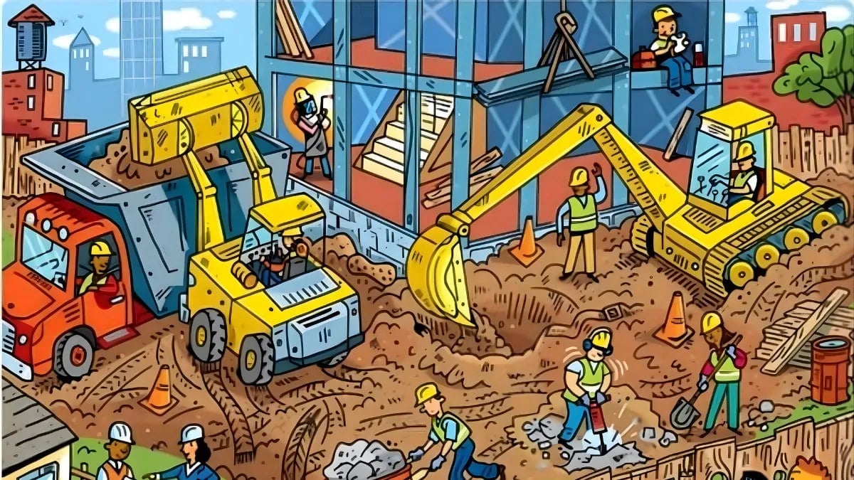 În acest joc puzzle, o banană este ascunsă în mijlocul unui șantier.