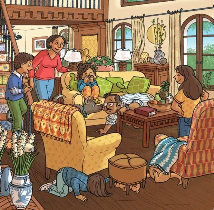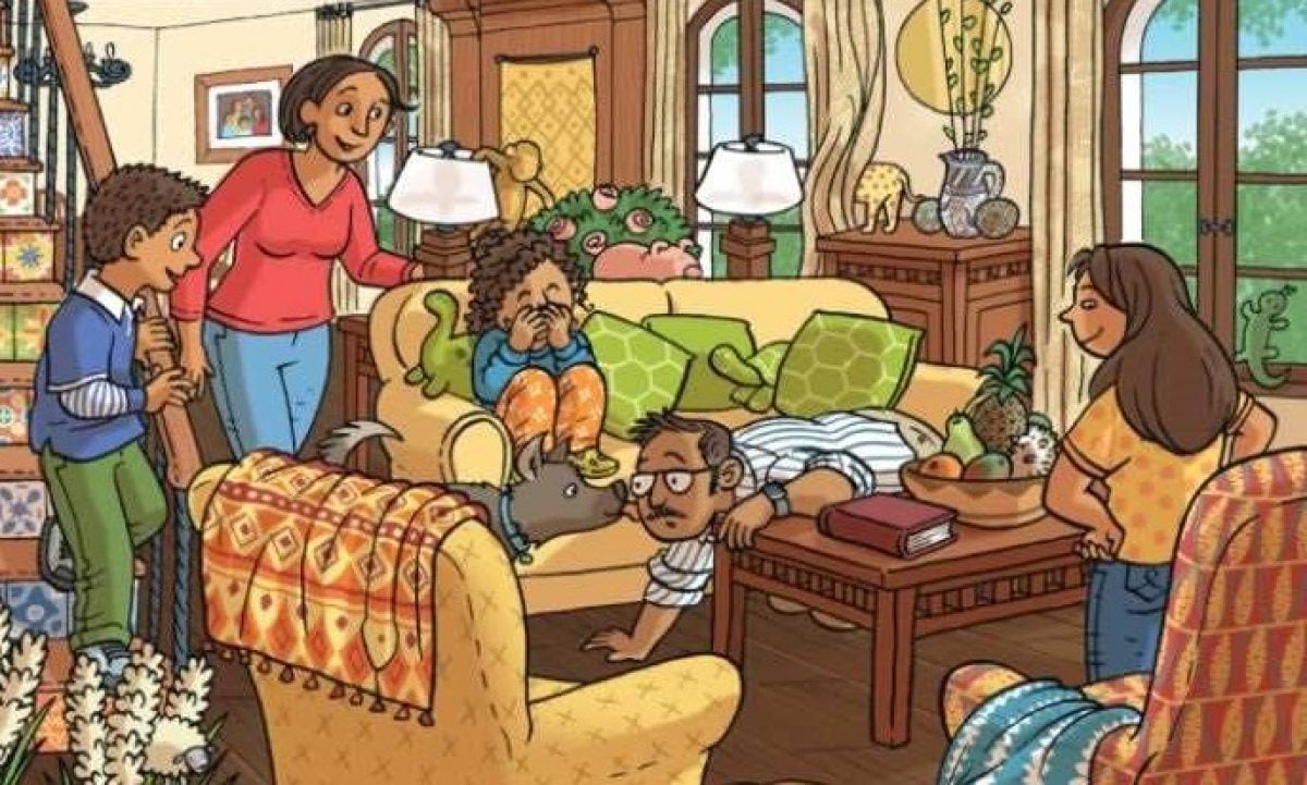 În imagine vedem o familie care a pierdut ceva și acum încearcă să îl găsească. Obiectele pierdute sunt o pensulă și o pensulă. Tata, mama și copiii lor încearcă fără succes să găsească obiectele pierdute, dar nu au reușit încă. Trebuie să ajutați familia în căutarea lor.
