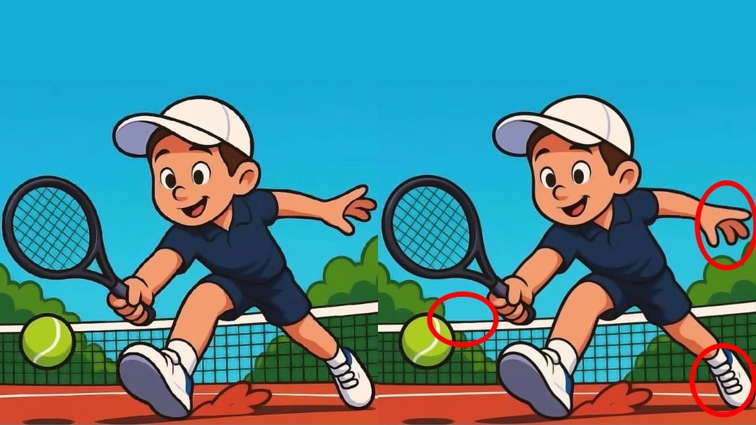 În fața ta sunt două imagini ale unui jucător de tenis. Sarcina ta este să găsești trei diferențe în doar 35 de secunde.