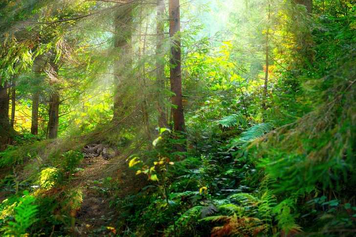 Imaginea arată o pădure verde densă. Undeva se ascunde un șarpe, pe care trebuie să îl găsim.