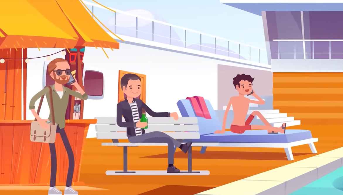 Fiecare dintre băieți este ocupat cu treburile lui – unii vorbesc la telefon, iar alții se bucură doar de un timp liniștit la piscină, cu o băutură în mână.