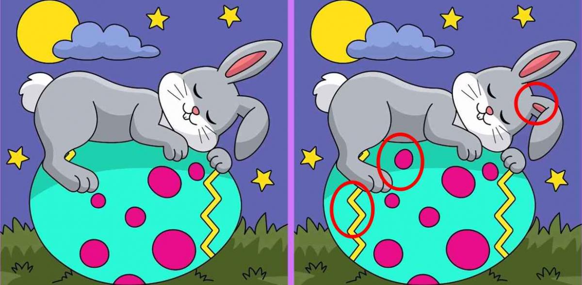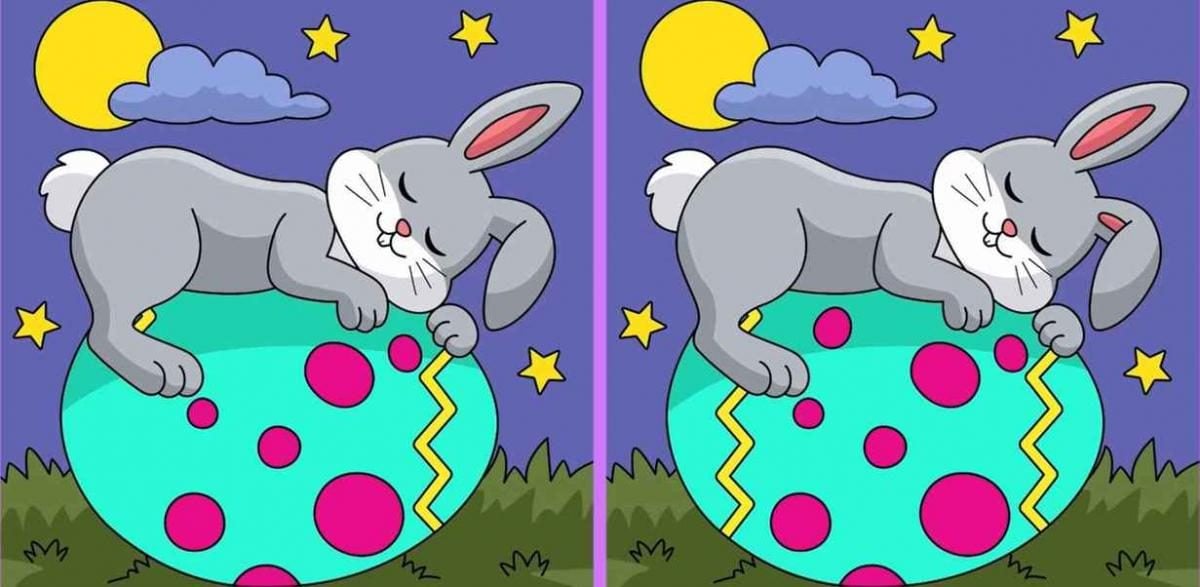 Sunteți gata să vă testați? Iată două imagini: ele arată un iepure care doarme pe un ou de Paște. La început ai putea crede că sunt complet identice, dar nu este așa – există trei diferențe între ele.