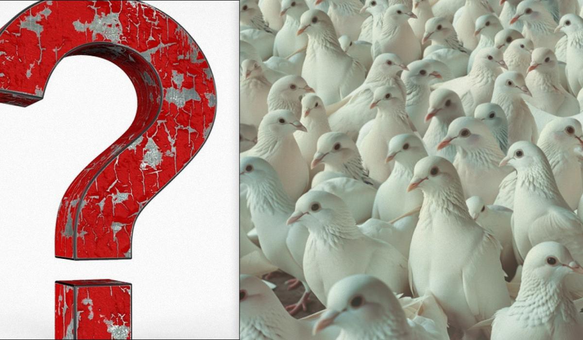 Un pescăruș trebuie să fie găsit la timp printre un număr mare de porumbei / colaj cu fotografii de pixabay.com și Moje