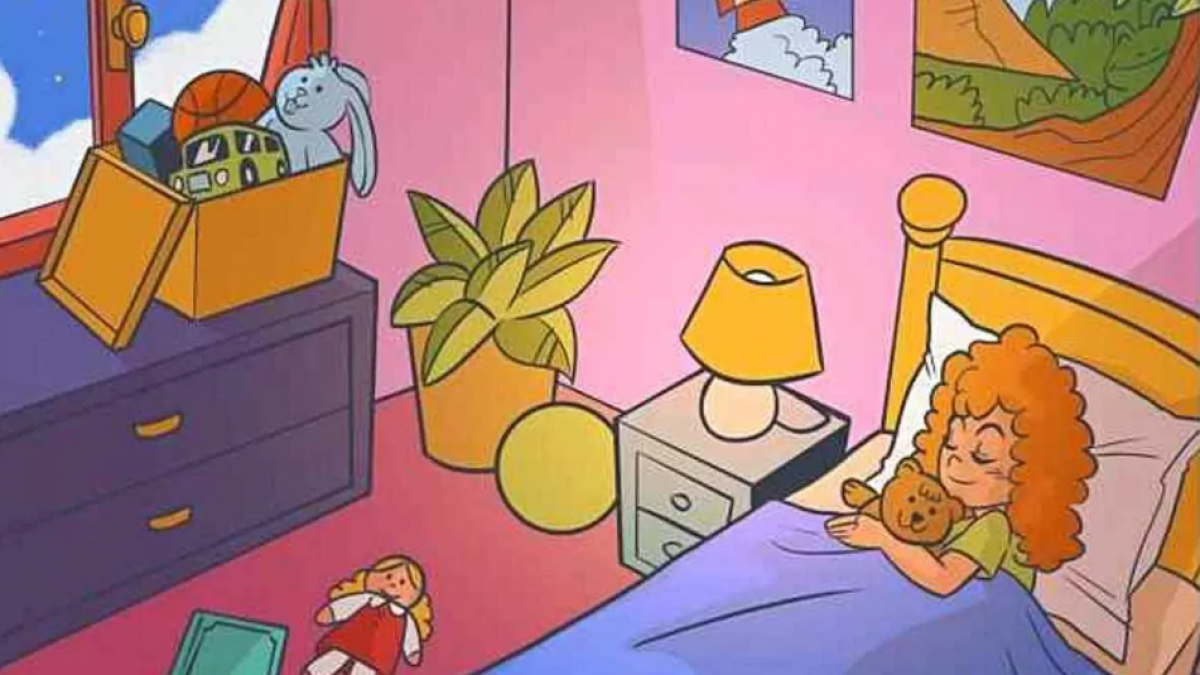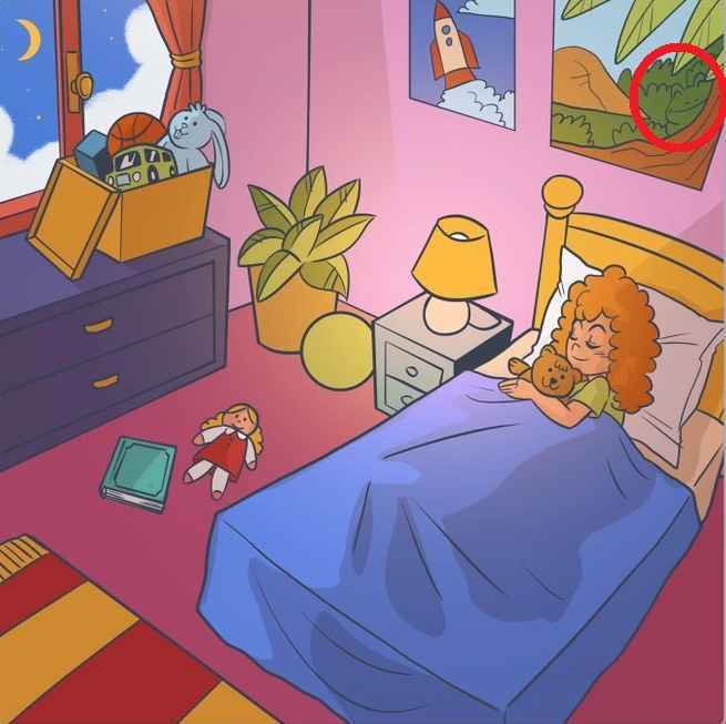 Nu ai putut găsi broasca? Iată un indiciu – este pe poza de deasupra patului fetei.
