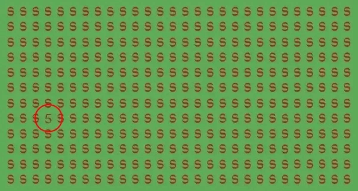 Privind imaginea, litera roșie „S” pare să ocupe întregul câmp dreptunghiular, însă unii vor fi capabili să vadă numărul ciudat în câteva secunde.