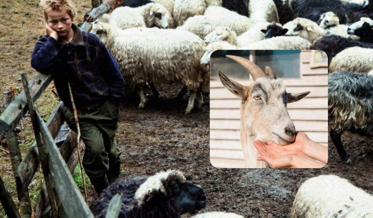 Ajută un tânăr să găsească o capră printre oi.