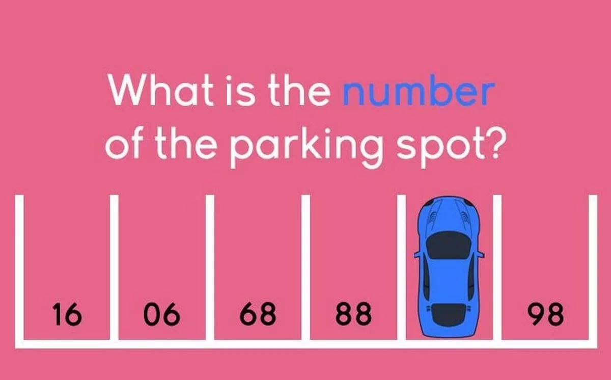 Tot ce trebuie să faceți este să vă uitați la numerele de pe locurile de parcare și să spuneți ce număr este ascuns sub mașina albastră.