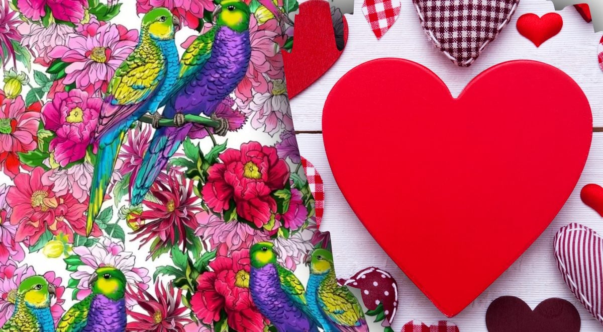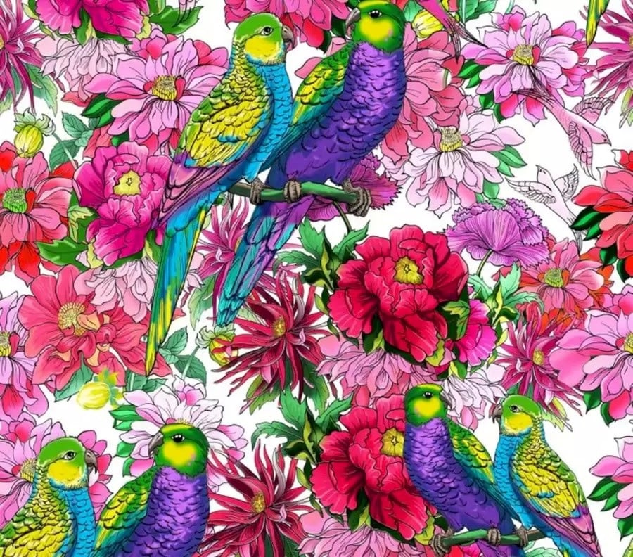 În fața ochilor tăi – o imagine luminoasă cu o mulțime de flori și papagali. Păsările stau în perechi printre flori. Și în această atmosferă romantică undeva ascunsă inima. Unde anume se află aceasta nu va putea fi văzută.